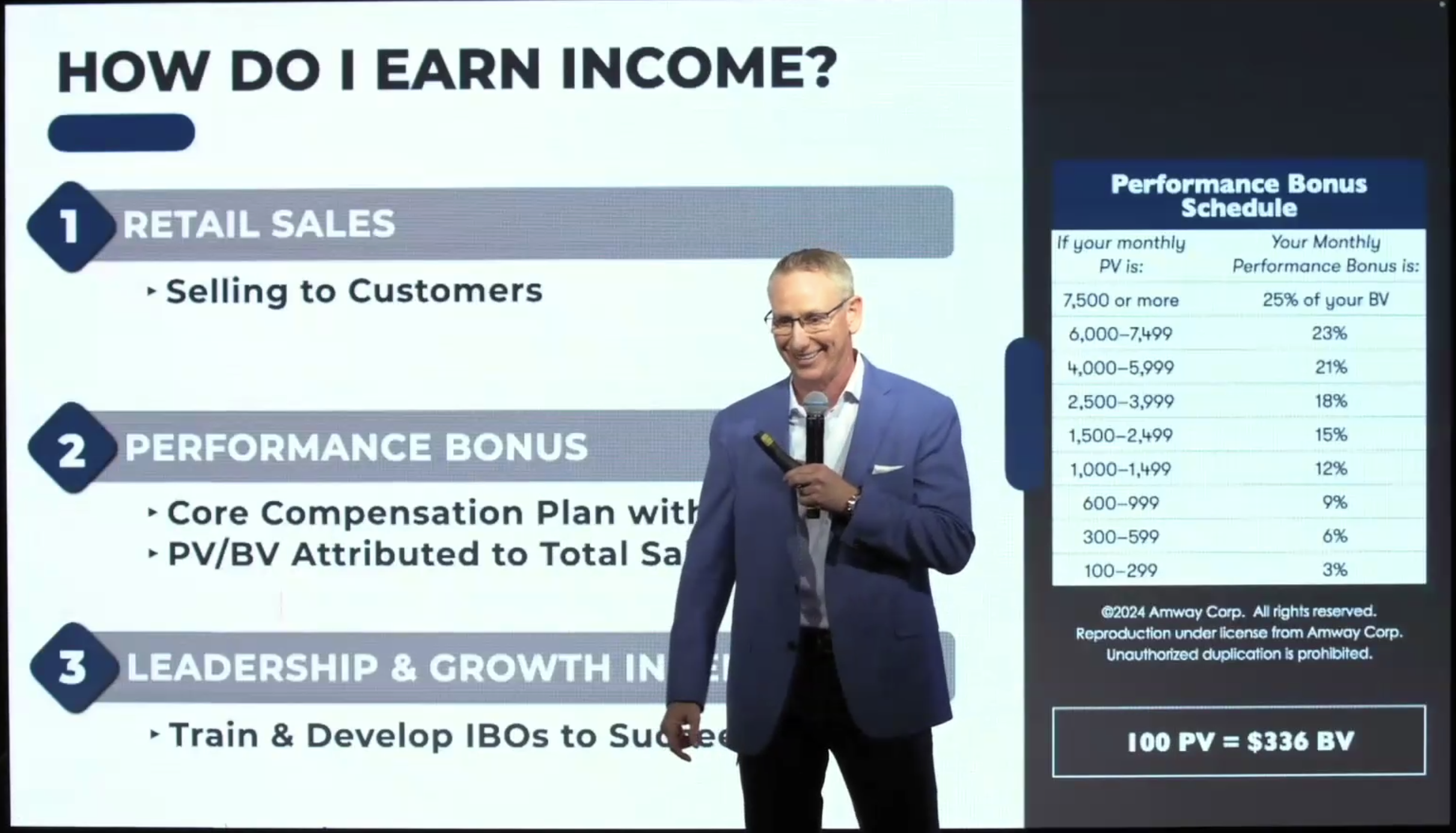Present the Amway Sales and Marketing Plan professionally, utilizing live meeting, pre-recorded session, or working with your upline